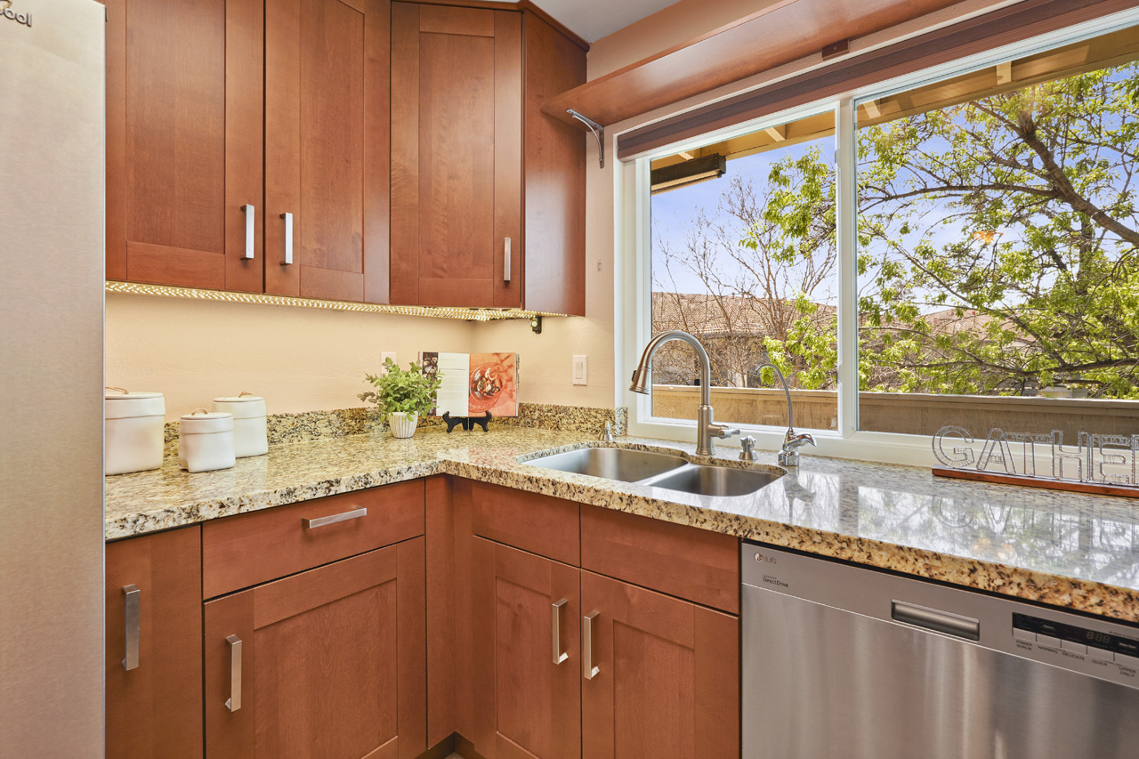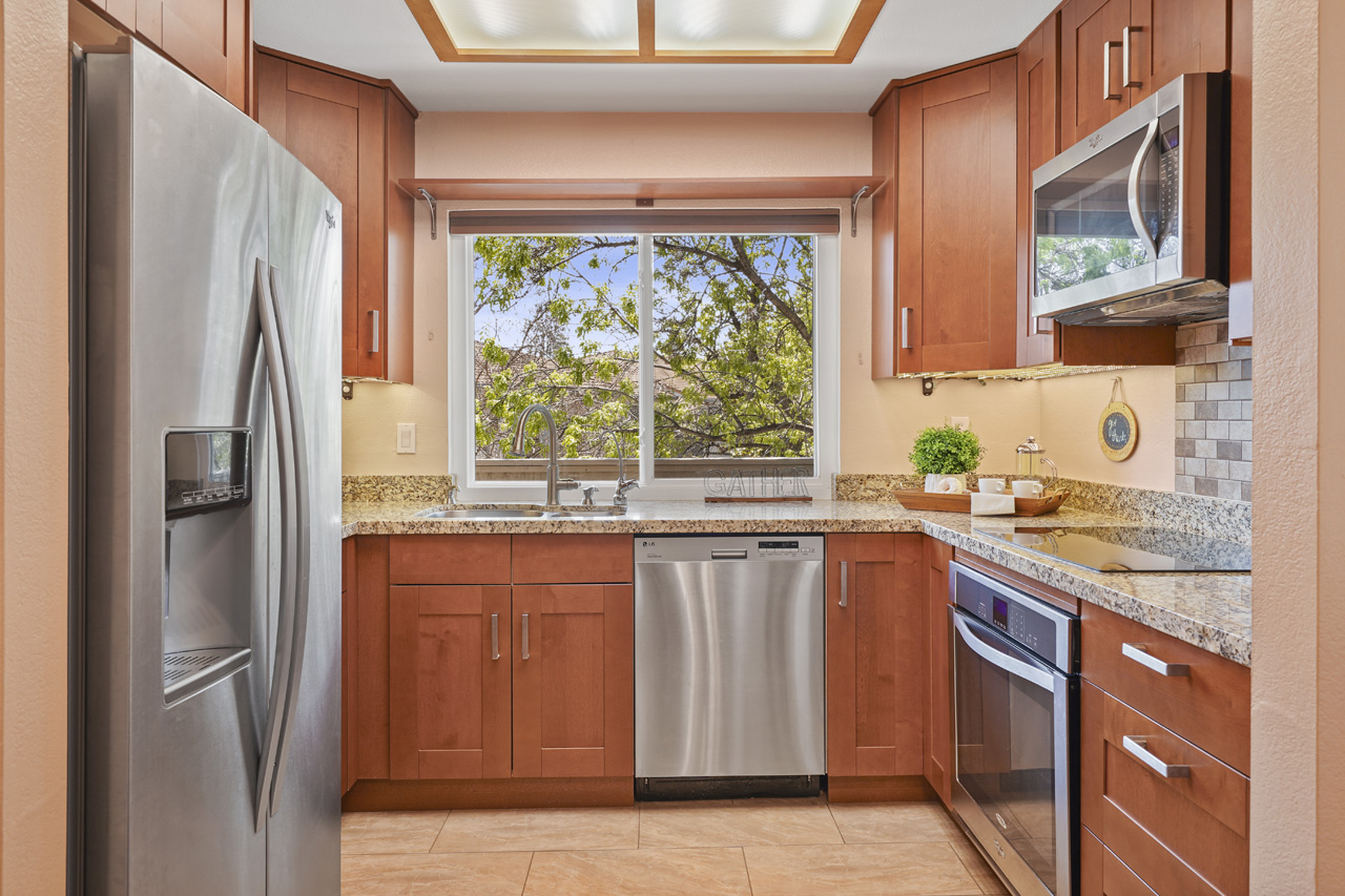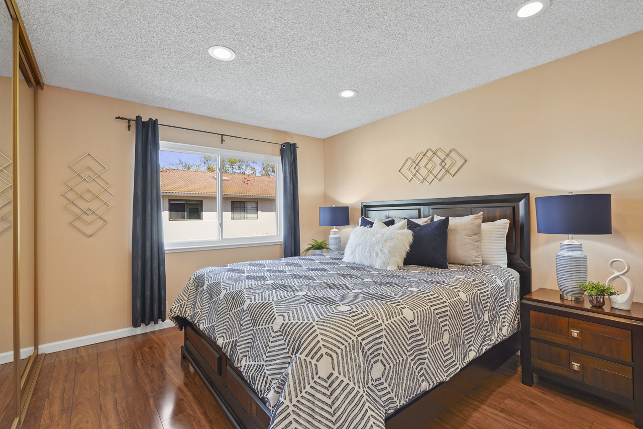 Beautifully updated 3-bedroom condo with vaulted ceilings. This home is the best valued 3 bedroom available on the market and is completely move-in ready! Located in the rear of the community, this top-level condo features new laminate flooring, updated kitchen with newer appliances, and granite countertops. Sunny breakfast nook featuring a large bay window, vaulted ceilings and open to the spacious living room. Energy-saving features include attic insulation for year-round added comfort, double-pane windows, and more. This fabulous home has a two-car tandem garage with a smart opener and is conveniently located 10 mins from Downtown San Jose, minutes to 87, and the Plant Shopping Center. The community offers beautiful green belts between buildings, walkways, playgrounds, and a pool. This is the most popular floor plan in the community and they do not come up often!