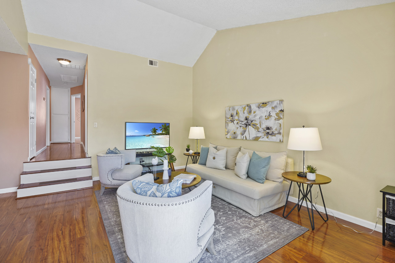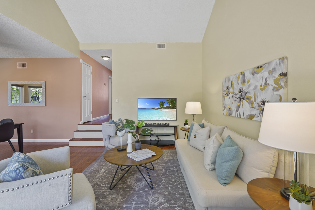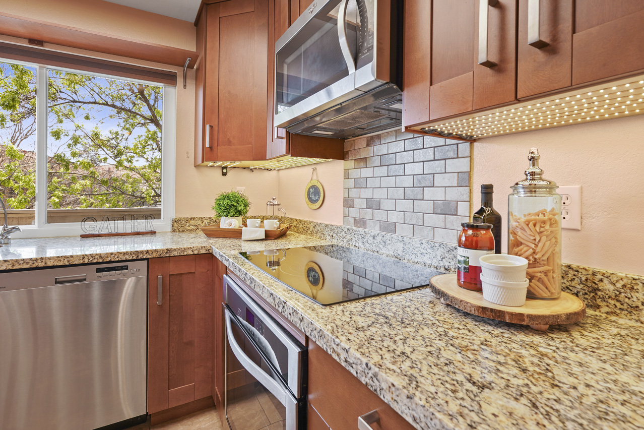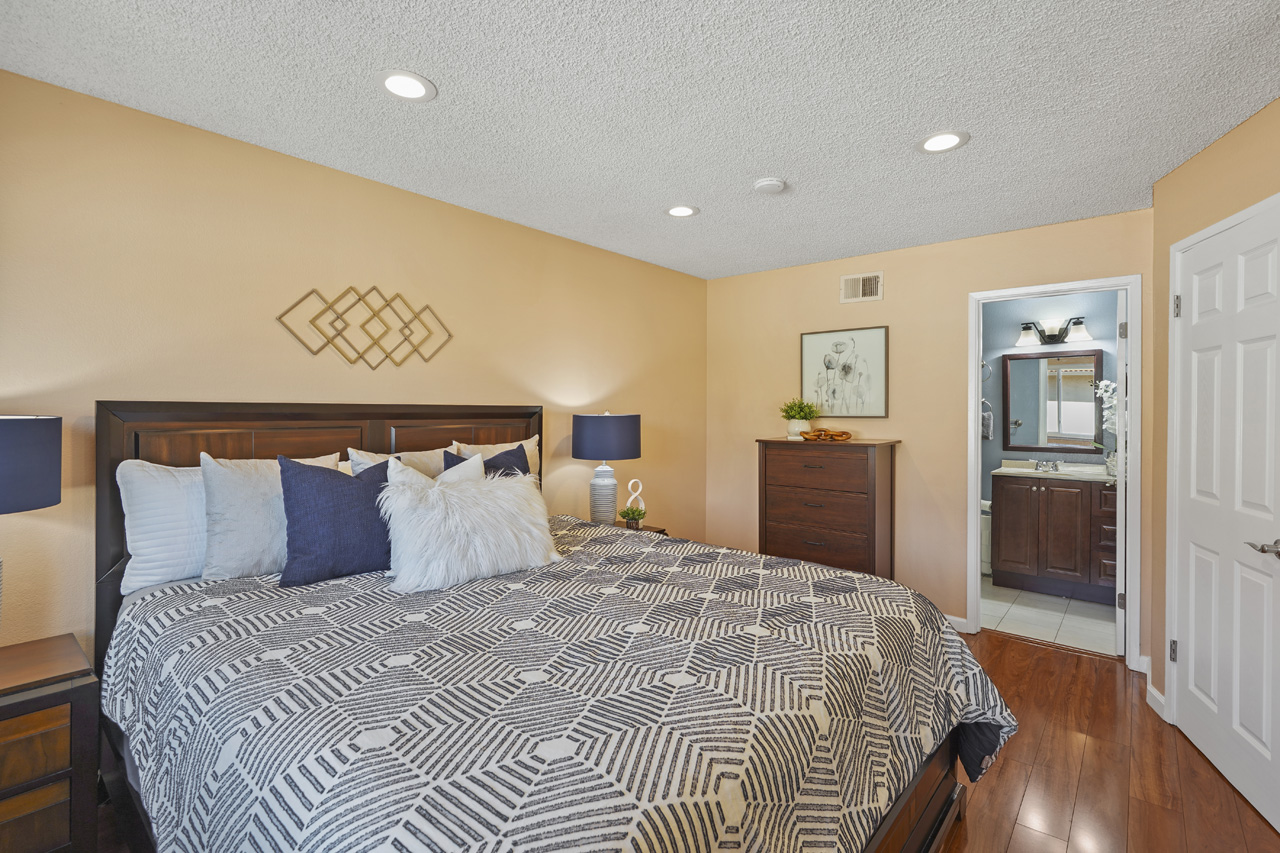 Beautifully updated 3-bedroom condo with vaulted ceilings. This home is the best valued 3 bedroom available on the market and is completely move-in ready! Located in the rear of the community, this top-level condo features new laminate flooring, updated kitchen with newer appliances, and granite countertops. Sunny breakfast nook featuring a large bay window, vaulted ceilings and open to the spacious living room. Energy-saving features include attic insulation for year-round added comfort, double-pane windows, and more. This fabulous home has a two-car tandem garage with a smart opener and is conveniently located 10 mins from Downtown San Jose, minutes to 87, and the Plant Shopping Center. The community offers beautiful green belts between buildings, walkways, playgrounds, and a pool. This is the most popular floor plan in the community and they do not come up often!